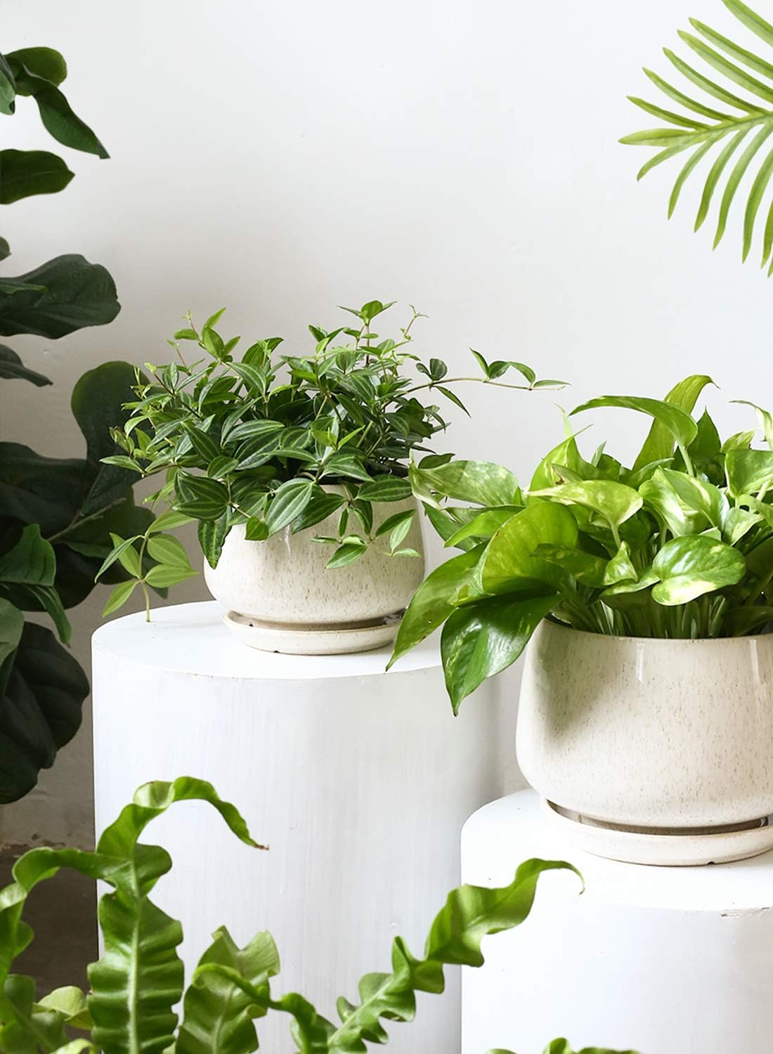 The beautiful reactive glaze beige finish adds a touch of elegance to any space, making these plant pots not only functional but also stylish. Plus, the included hole mesh pad ensures proper drainage while keeping soil in place.